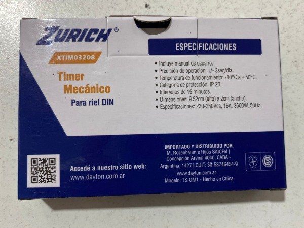 Especificaciones: 230-250Vca, 16A, 3600W, 50Hz.